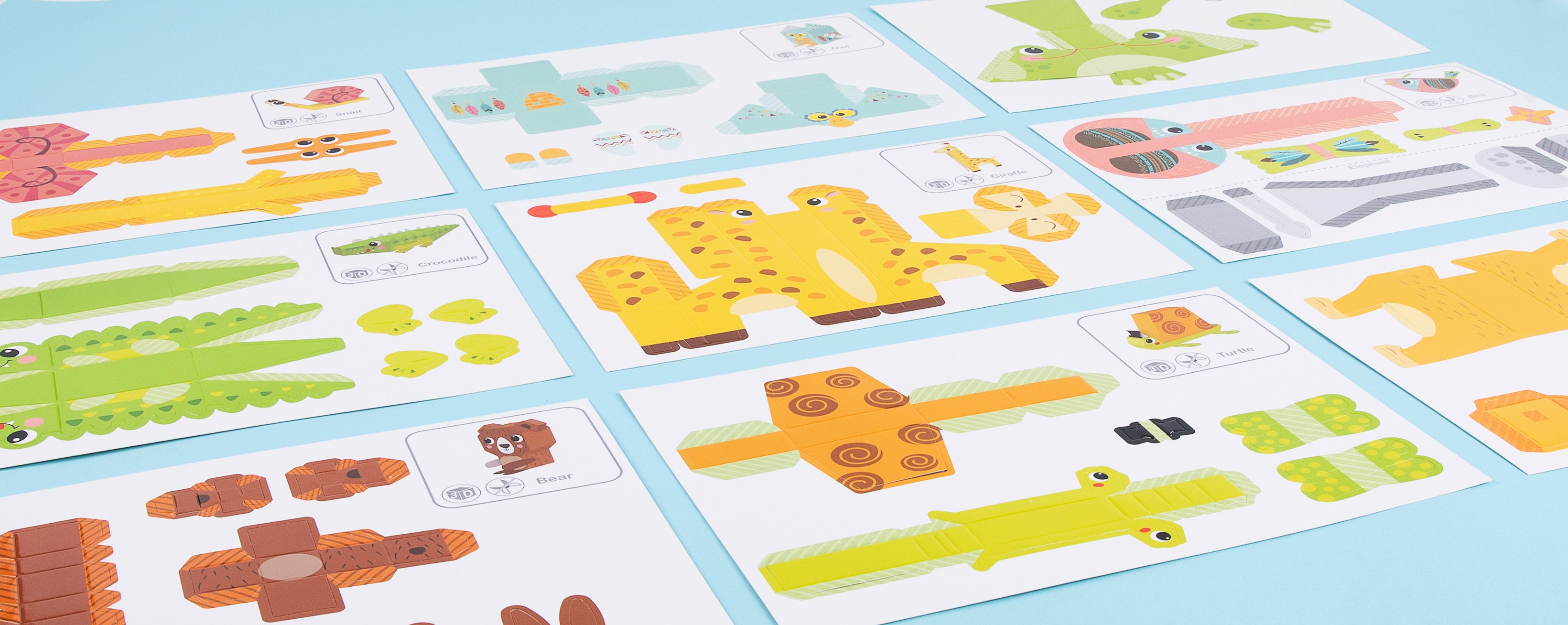 This kit includes 10 sheets of colourful paper featuring templates for 10 different animals.